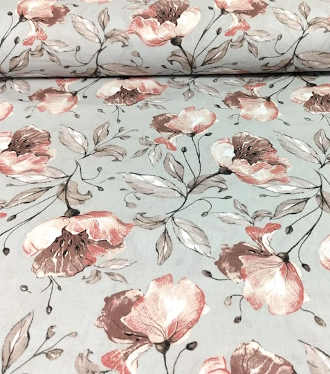 Bavlněná látka růže na šedé