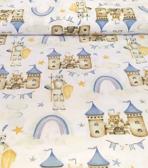 Bavlněná látka hrad modrýSkladem 7 m69 Kč/ m57 Kč bez DPH