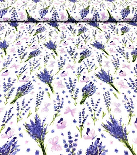 Bavlněná látka levandule kyticeSkladem 39 m89 Kč/ m74 Kč bez DPH