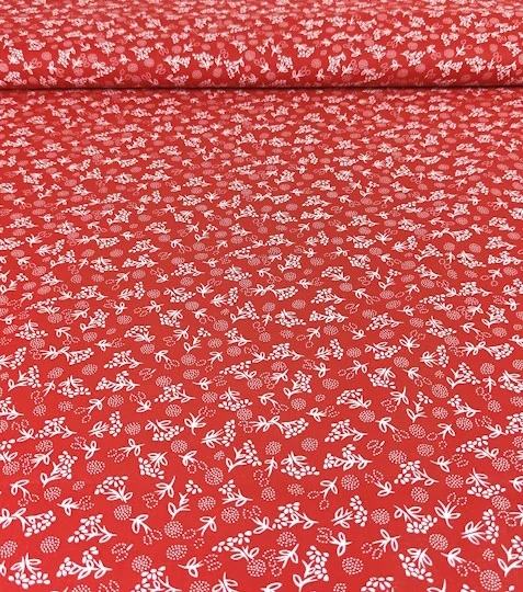 Bavlněná látka mechové kvítky na červenéSkladem 32 m89 Kč/ m74 Kč bez DPH