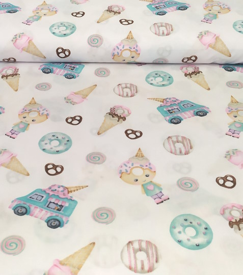 Bavlněná látka panáček donutSkladem 22.5 m59 Kč/ m49 Kč bez DPH