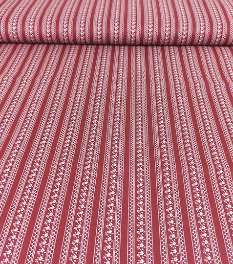 Bavlněná látka pruhy květin na bordóSkladem 30.7 m89 Kč/ m74 Kč bez DPH