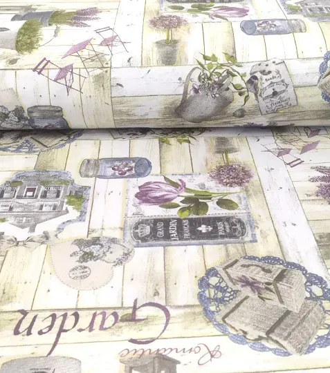 Dekorační látka směsová Garden. Použití: ubrusy, prostírání, podsedáky, polštáře, závěsy, dekorace, čalounění.