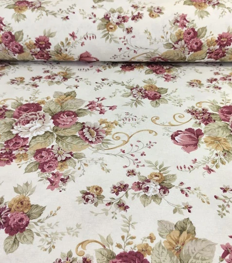 Dekorační látka kytice růží na smetanovéSkladem 50 m119 Kč/ m98 Kč bez DPH