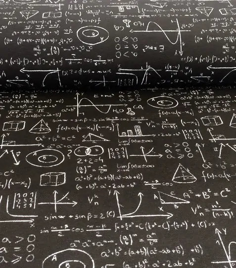 Dekorační látka matematické vzorce na černéSkladem 22.5 m119 Kč/ m98 Kč bez DPH