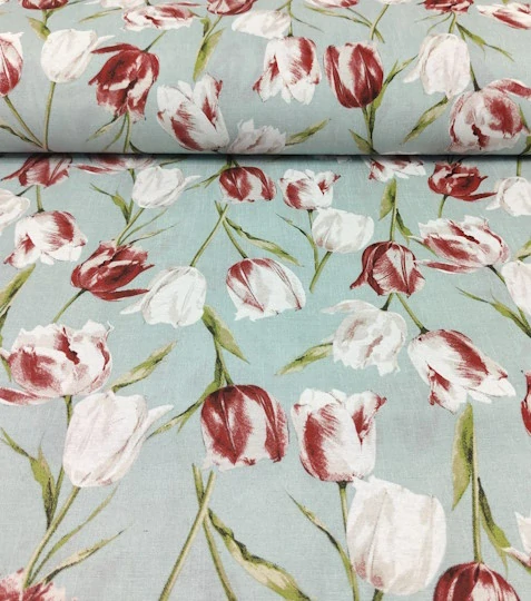 Dekorační látka tulipány na světle modréSkladem 53.8 m119 Kč/ m98 Kč bez DPH