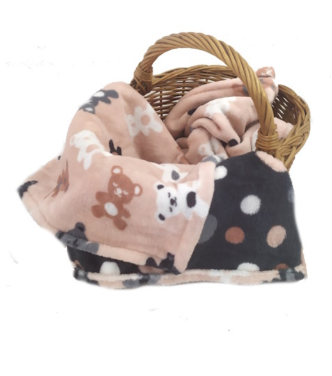 Dětské oboustranná deka wellsoft zaručí teplo a pohodlí pro vaše miminko. Na jedné straně jsou medvídci na růžové a na druhé straně jsou různě velká kolečka na tmavě šedé. Na obou stranách je příjemný měkký chloupek.
