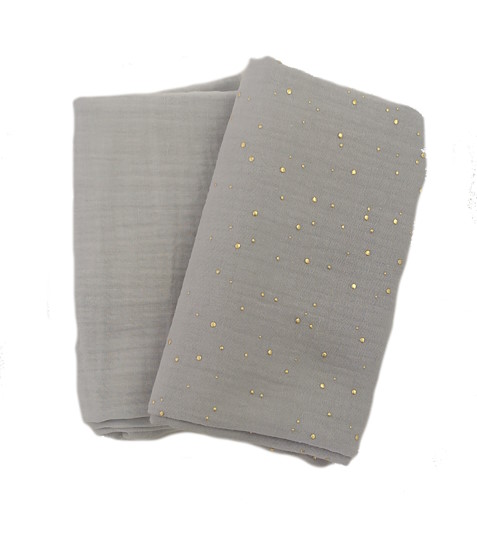 Dětské mušelínové pleny sada šedá se zlatými tečkami