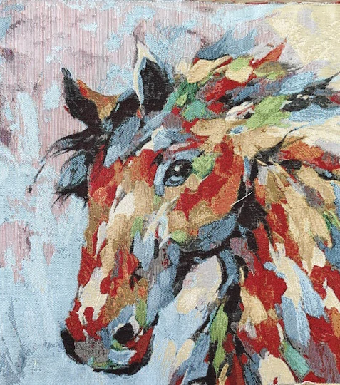 Příjemný měkký dekorační gobelínový panel ze směsového materiálu s vytkaným motivem viz foto.