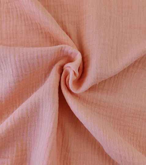 Mušelín 100% bavlněná látka lososový. Mušelín, kreš bavlna nebo dvojitá gázovina je vhodná na šití pro miminka, ale i dospělé. Použití : nákrčníky, čepičky, hnízdečka, zavinovačky, hrací deky, overaly a hlavně letní oblečení a další.