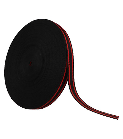 Popruh černý s červenými pruhy 20 mm / 5 m