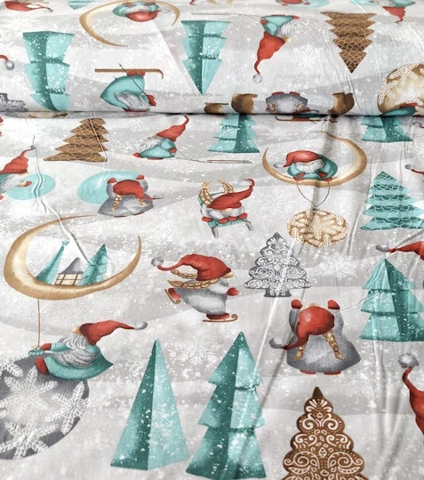 Vánoční bavlněná látka skřítci na sněhuSkladem 36 m69 Kč/ m57 Kč bez DPH